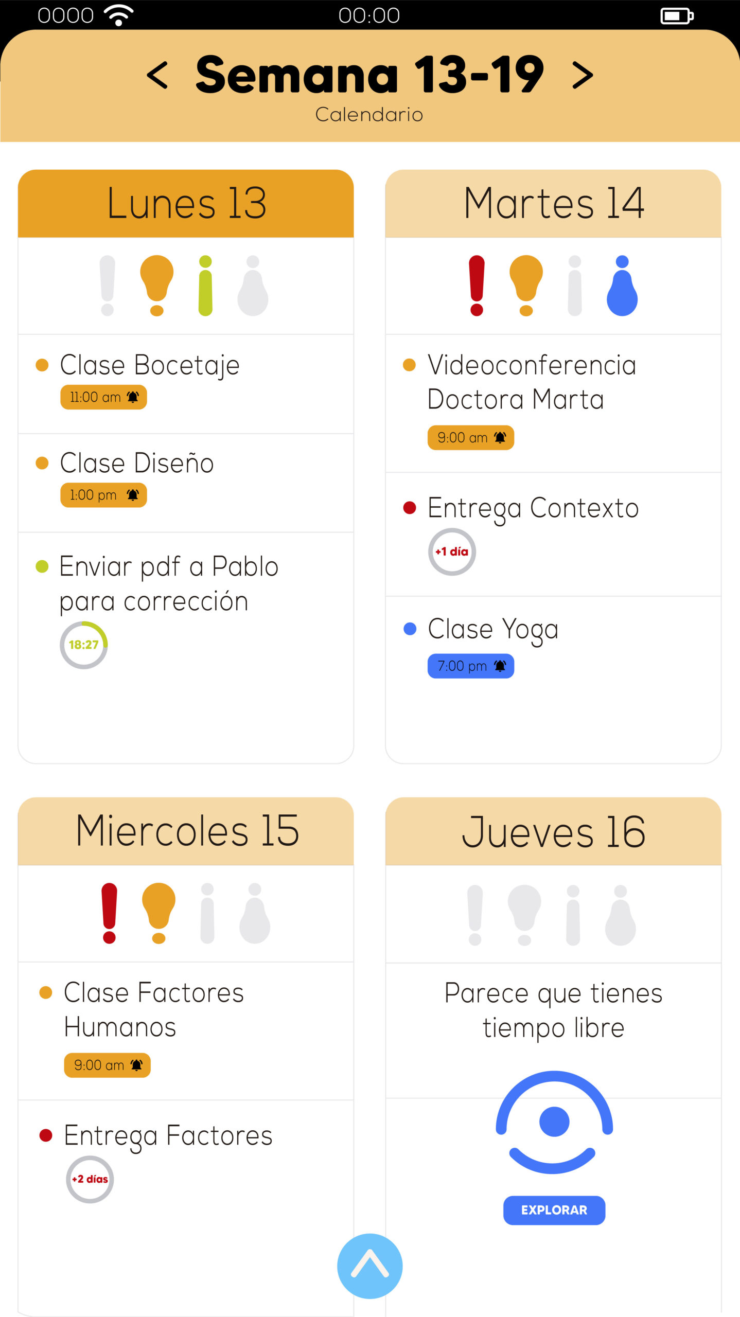 Una forma ampliada de visualizar las actividades de los días consiguientes es en las listas de la aplicación al hacer click en un dia.